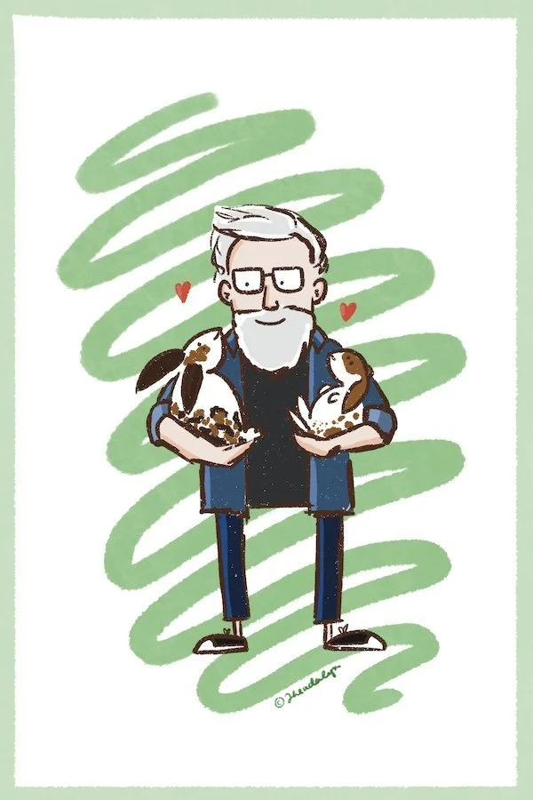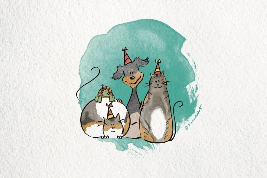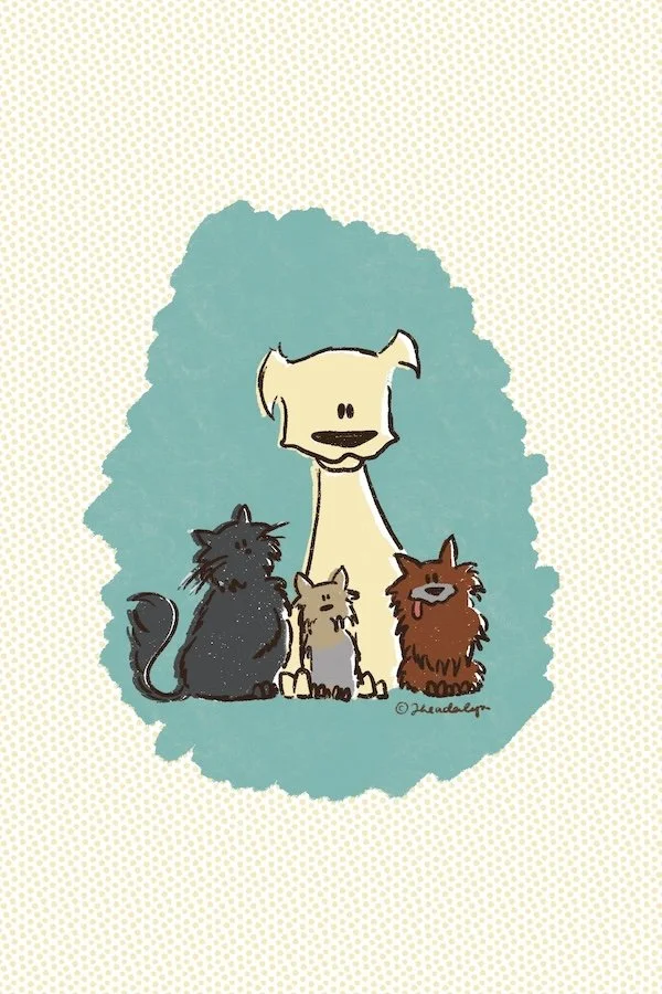 Cards have been my main creative output for years and years. I love drawing friends and family and their pets for any and all occasions.